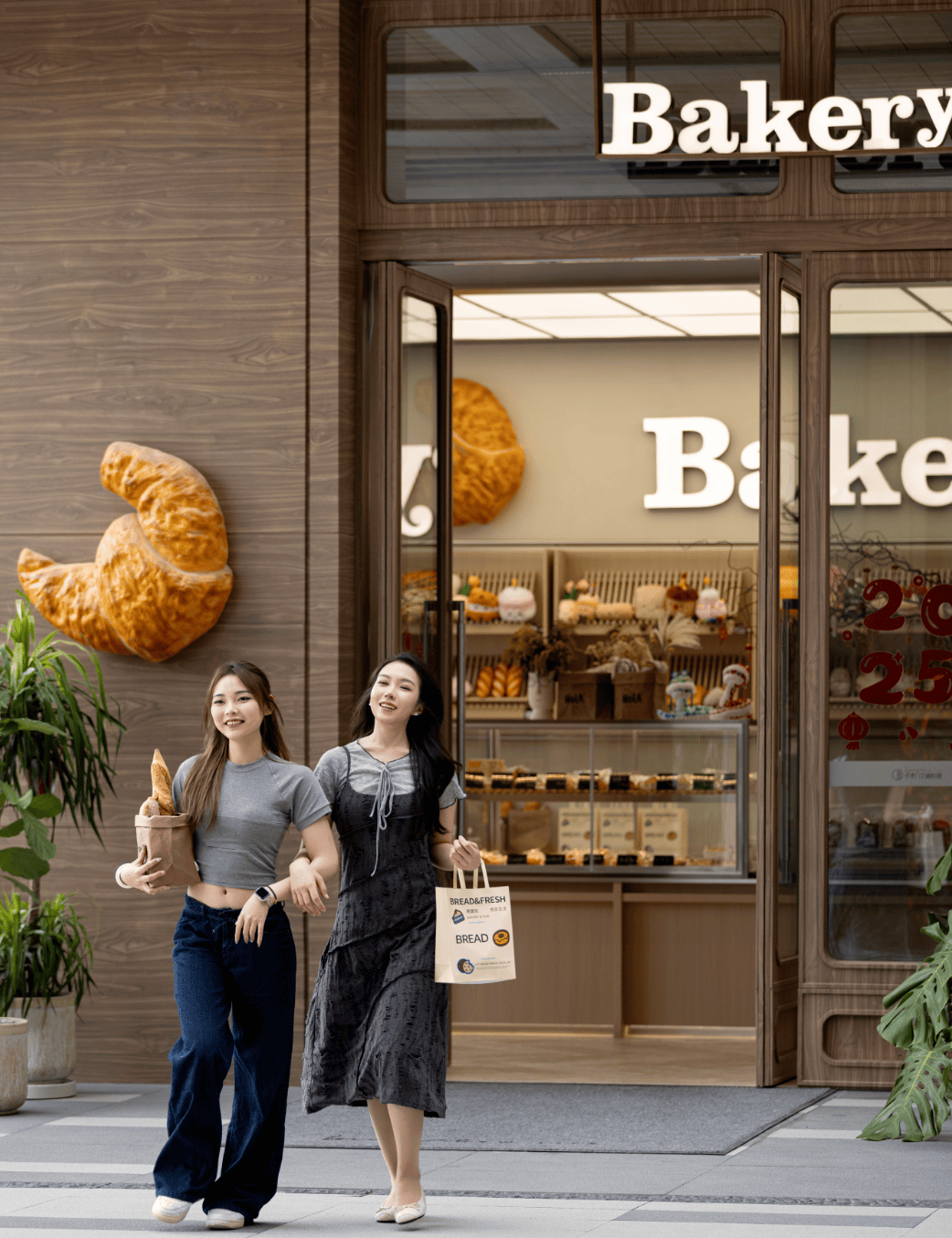 街区中,有网红面包店「麦森林」,早上买杯现磨咖啡和一个刚出炉的面包,早C(Coffee咖啡)目标达成。
