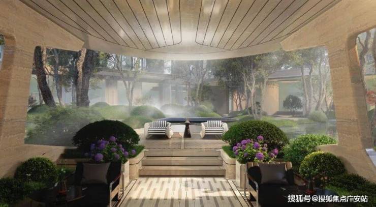 “回归之境”以3500㎡下沉水苑为核心,汇聚会客、泳池、茶室等多功能空间,形成仪式感十足的社区舞台。