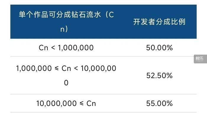 一个简单的公式就能计算清楚新政策的分成方式:“开发者收益=(单作品可分成钻石流水×分成比例)+专项补贴”。