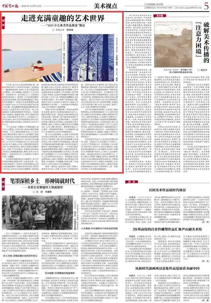 “6年前,我上幼儿园大班的时候,第一次参加首届全国少儿美术作品展览,当时我画了一幅《歌唱祖国》,画里3个孩子围着话筒大声歌唱。因为这幅画,我收获了人生中的第一张获奖证书。如今我长大了,对祖国的爱变得更具体了,我创作了《红砖厝前簪花谣》参加此次展览,把对祖国的爱融进了我对家乡的描摹中。”参展小作者陈墨萱的这番线少儿美术作品展览”标注的生动注脚。她这幅描绘福建闽南建筑和民俗的作品,与众多优秀少儿美术作品一同,正在福建南平大剧院和浦城美术馆展出。本次展览由中国美协、福建省文联、南平市政府共同主办,中国文联美术艺术中心、中国美协少儿美术艺委会、南平市文化和旅游局、南平市文联、浦城县政府共同承办,将持续至2026年3月8日。