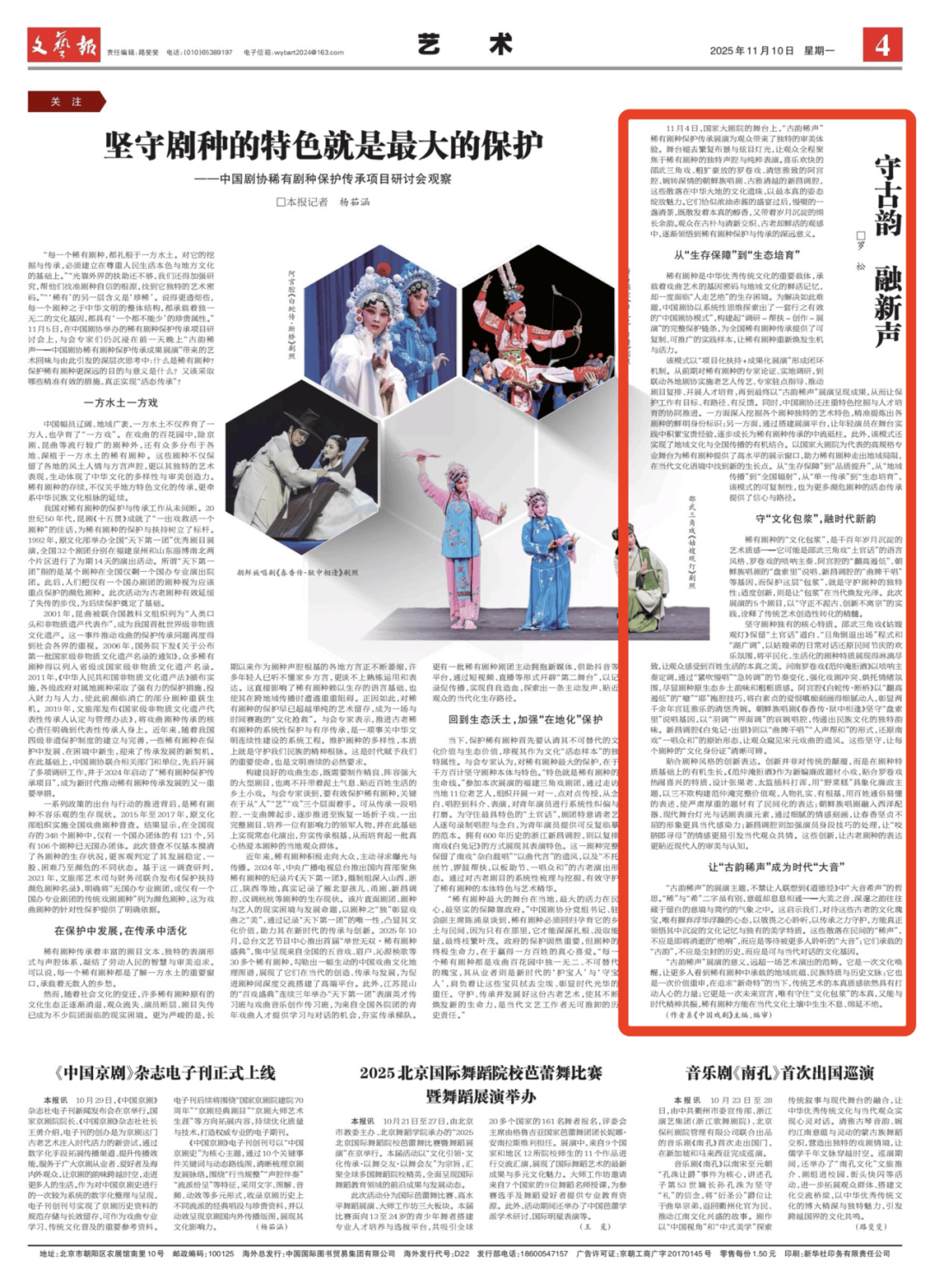 11月21日,《环球时报》,英文版,封底第16版全版面刊文《以三角戏为例探索稀有剧种保护新路径 》,宣传报道中国剧协稀有剧种(邵武三角戏)保护传承工作。