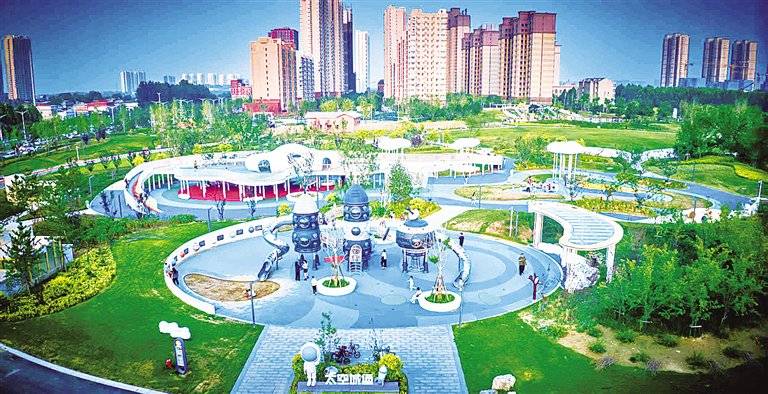 作为我市2024年建设的最大口袋公园,祥和·八里庄口袋公园分为南北两园,面积15000余平方米,建有亲子球场,满园绿意与全民日常健身融为一体。