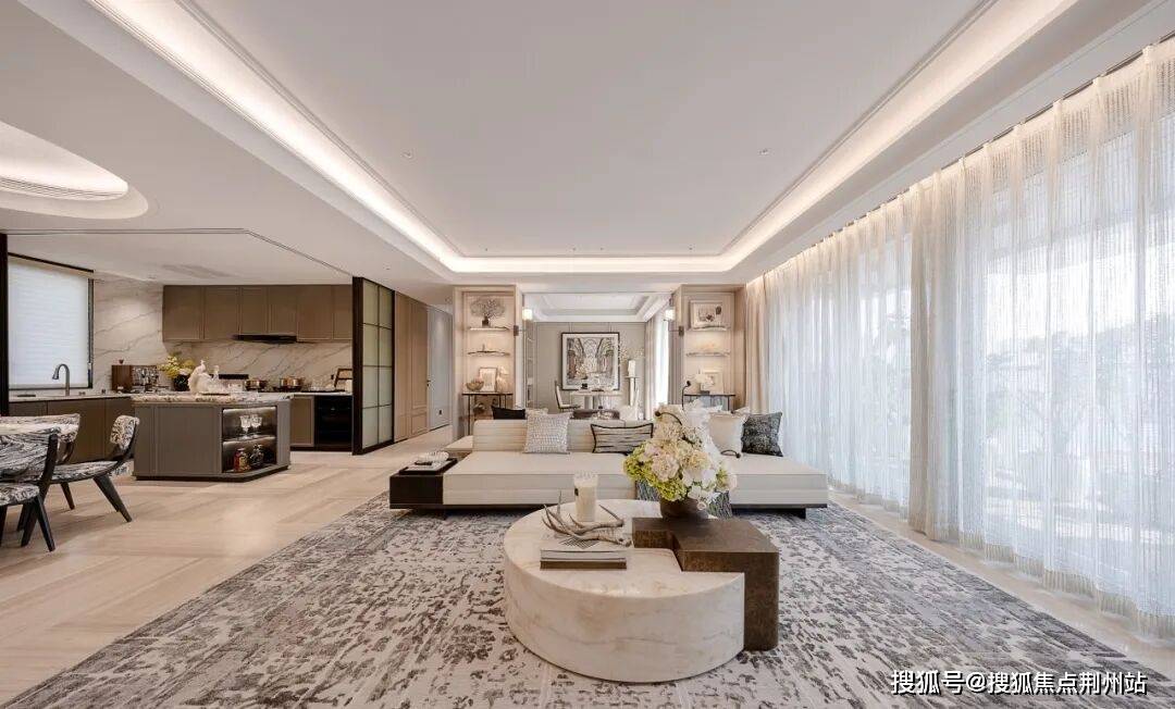 其中,计容面积约185㎡(建筑面积约191㎡ )作为承上启下的主力担当,设计4房2厅3卫全明格局,性能全面。约3.25米层高与约18.7米南向大面宽,赋予空间朗阔气度;四开间朝南与双套房设计,实现家庭成员的阳光平权;LDK一体化社交联厅,打破传统厅室界限,为家族聚会、商务接待提供开阔场域;南北双空中花园,将自然四季引入日常;主卧套房拥有约270°环幕视野,将居住的尊享感拉满。