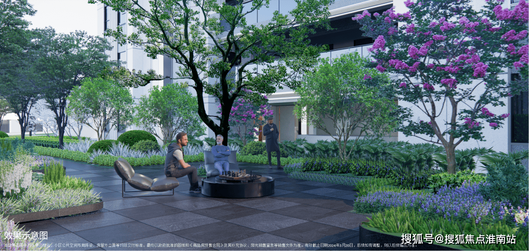 由香樟、迷迭香、夜来香等构筑的芳草花厅,缤纷色彩与清新芬芳相结合,为业主提供野餐、放风筝等场景活动;