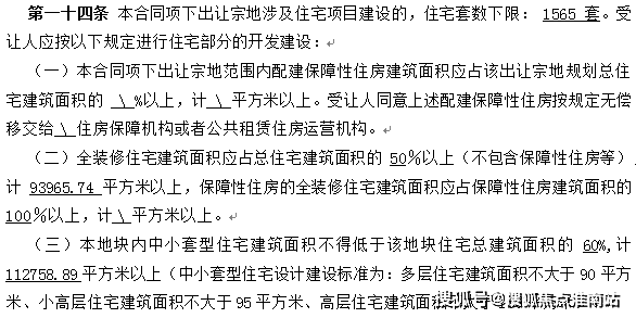 地块规划住宅下限1565套,地块要求一半全装修,中小户型比例为60%以上,装修集采标准为2500元/平。