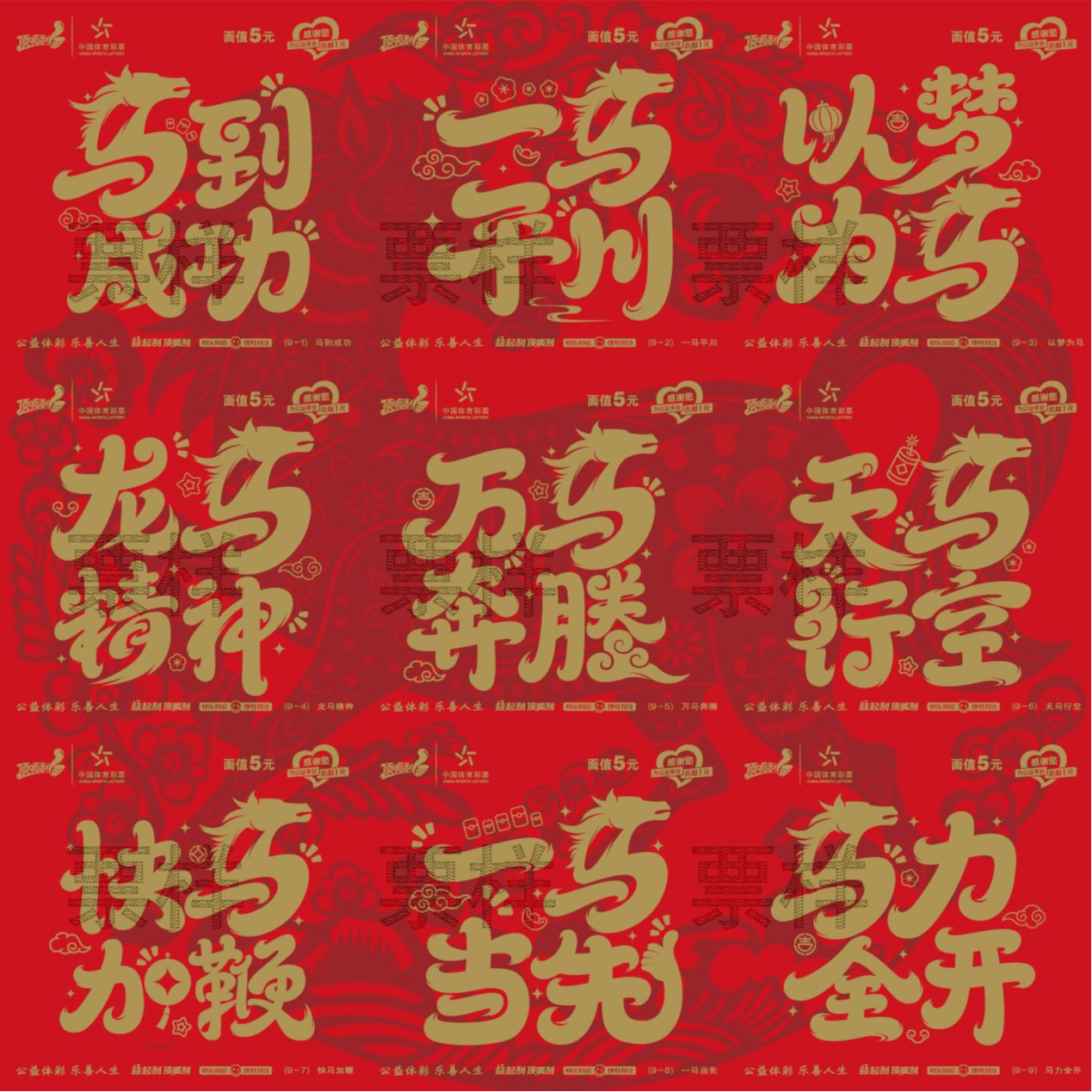 5元面值的“午马”,以传统剪纸风格勾勒骏马神韵,采用独特九联张设计,9个票面场景拼合,可组成完整骏马剪纸窗花图样,充满创意和美好寓意。