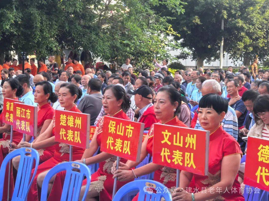 刘竹芬主持了开赛仪式。王强在开赛仪式上代表建水县委、县人民政府致欢迎词,对省州老体协对建水老年体育工作的关心支持表示感谢,向各地州、省级各会员单位,红河州各县市参加本次邀请赛的裁判长、裁判员、运动会表示热烈的欢迎,并祝邀请赛圆满成功。梁钒代表组委会致辞向出席开赛仪式的各位领导及参赛的全体运动员、教练员、裁判员表示热烈欢迎,向关心重视此次比赛的建水县委、县政府和红河州老体协、建水老体协表示感谢!并对比赛工作提出了具体要求。云南省老体协副主席李勃宣布邀请赛开赛。