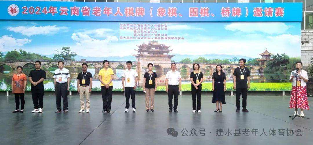 棋牌邀请赛由云南省老年人体育协会主力,红河州老年人体育协会、建水县体育总会、建水县老年人体育协会承办,云南省老体协棋牌专委会协办。云南省老体协副主席李勃,原省老体协副主席、乒羽专委会主任梁钒,原省老体协副主席、棋牌专委会主任吴改香,红河州老体协主席刘竹芬,建水县委常委,宣传部长王强,县人大常委会副主任王菊莲,政协副主席李有福等领导出席了开赛仪式。