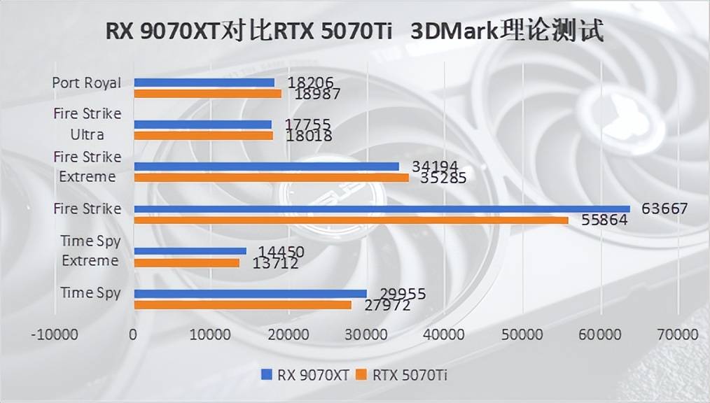 在3DMark的理论测试中,同为4K档守门员,这张华硕TUF RX 9070 XT O16G GAMING显卡相比隔壁的RTX 5070 Ti,整体在测试数据上有着平均2%的领先优势,尤其是在Time Spy测试中,能达到2K分辨率下领先7%,4K分辨率下领先5%的出色成绩。