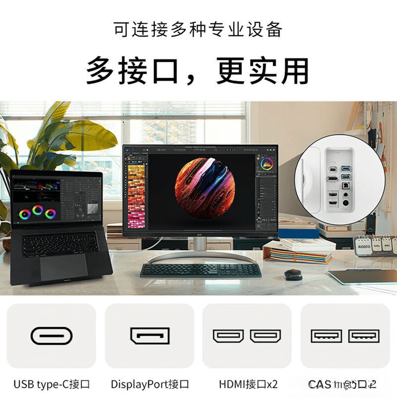 推荐理由:嘿,看这款LG 27UQ850V显示器,它简直就是我心中的办公神器!你看看,这4K UHD分辨率,3840×2160像素,画面清晰度直接爆表,再配上2000:1的高对比度,HDR400和DCI-P3 98%广色域,色彩鲜活真实,看电影、做设计,那效果简直不要太棒。还有,它的IPS屏幕178°可视范围广,不管你坐哪里,画面都一样清晰。