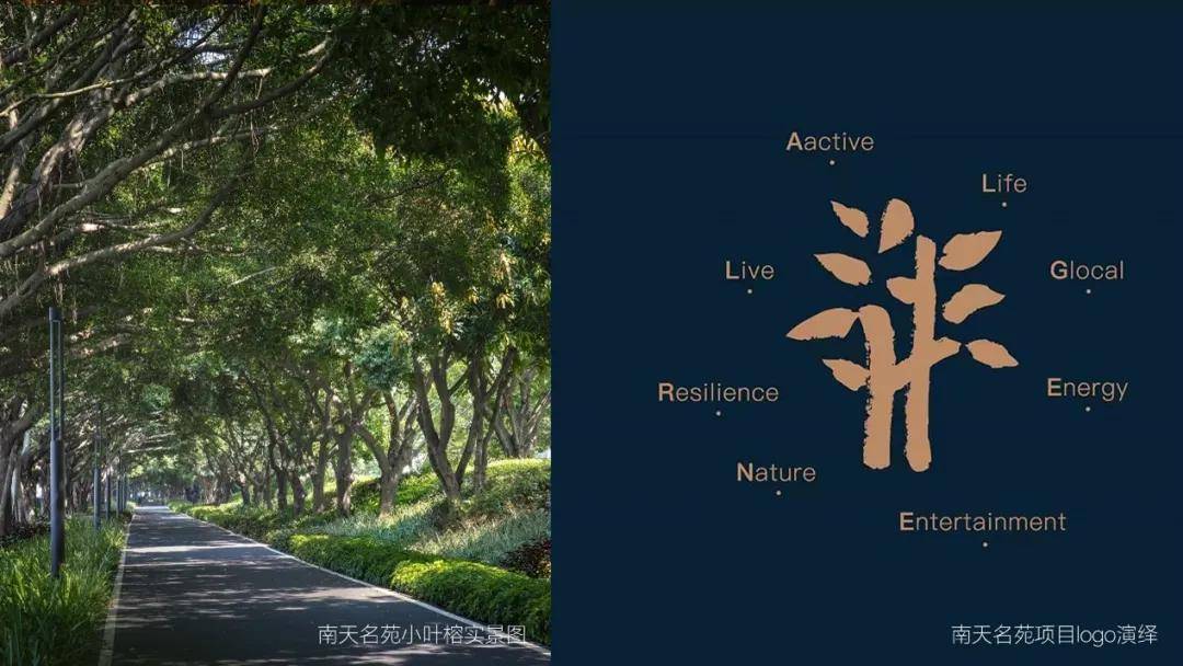 江边,800棵小叶榕静静伫立。那是30年前先生率白天鹅员工所种,至今仍枝繁叶茂,成为南天名苑的Logo与天启组团建筑立面的设计灵感之源。